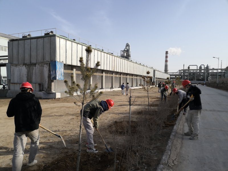 鏟土、扶苗、踩實(shí)、澆水……隨著一串串程序性動(dòng)作一行行樹苗迎風(fēng)挺立。連日來我公司抓住春季植樹造林的大好時(shí)機(jī)紛紛行動(dòng)起來,各裝置責(zé)任到人,分工明確,爭相開展植樹綠化活動(dòng)。