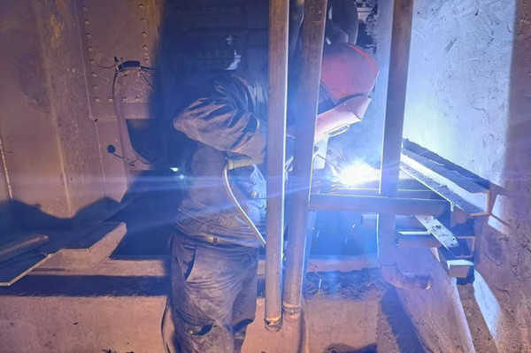 在檢修現場,我們的檢修工人身系安全帶,手拿焊鉗,蹲在狹小的空間,焊接水管,耗時耗力,唯有飛濺如麥穗的焊花展現著他們的顏色,魚骨似的焊縫是他們驕傲的成果。同時在檢修過程中也伴隨著灰塵飛揚和各種安全隱患,但在我們檢修工人的臉上沒有看見沮喪的表情,看到的是檢修工人汗水浸透的后背,沒有休憩,只有投入;看到的是檢修工人一張張布滿灰塵的臉頰,沒有怨言,只有投入。在這里你可以看到那一個個無比堅毅的目光,感受到他們內心滿滿的自信和他們愛崗敬業(yè)、無私奉獻、不畏艱辛的精神;他們攜手共進、分工合理、工作有序,只為創(chuàng)造安全的檢修環(huán)境;他們?yōu)樘崆巴瓿蓹z修任務加班到深夜,工作時間長、工作量大,不辭辛勞,沒有任何怨言,充分展現了“團結、拼搏”的企業(yè)精神。