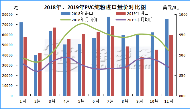 3.1 2019年聚氯乙烯PVC進(jìn)口量價(jià)分析