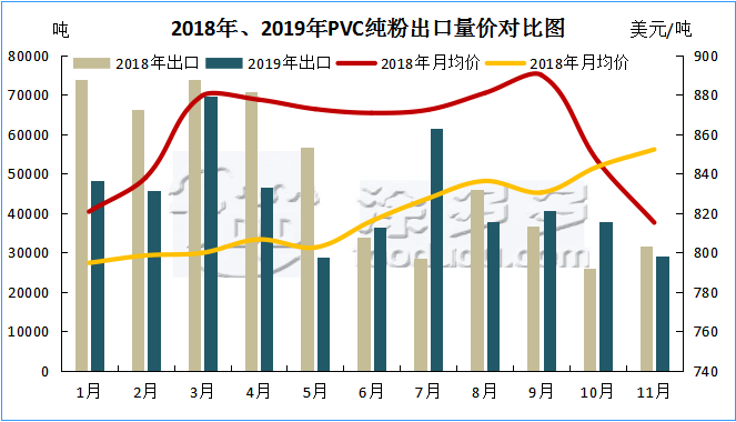 3.2 2019年聚氯乙烯PVC出口量價(jià)分析