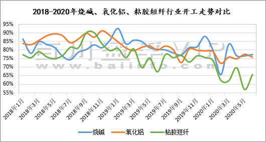 從開(kāi)工率方面,根據(jù)百川統(tǒng)計(jì)數(shù)據(jù),2020年1-6月粘膠短纖平均開(kāi)工率為65.1%,同比2019年1-6月平均開(kāi)工率74.9%下滑13.1%;2020年1-6月氧化鋁平均開(kāi)工率為75.9%,同比2019年1-6月平均開(kāi)工率81.61%下滑7%。