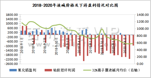 氧化鋁、粘膠短纖作為液堿的主力下游,整體用堿量占全部燒堿產(chǎn)量的38%-45%,其行業(yè)開(kāi)工不佳制約液堿需求,同時(shí)其每輪訂價(jià)更引領(lǐng)全國(guó)燒堿走向。