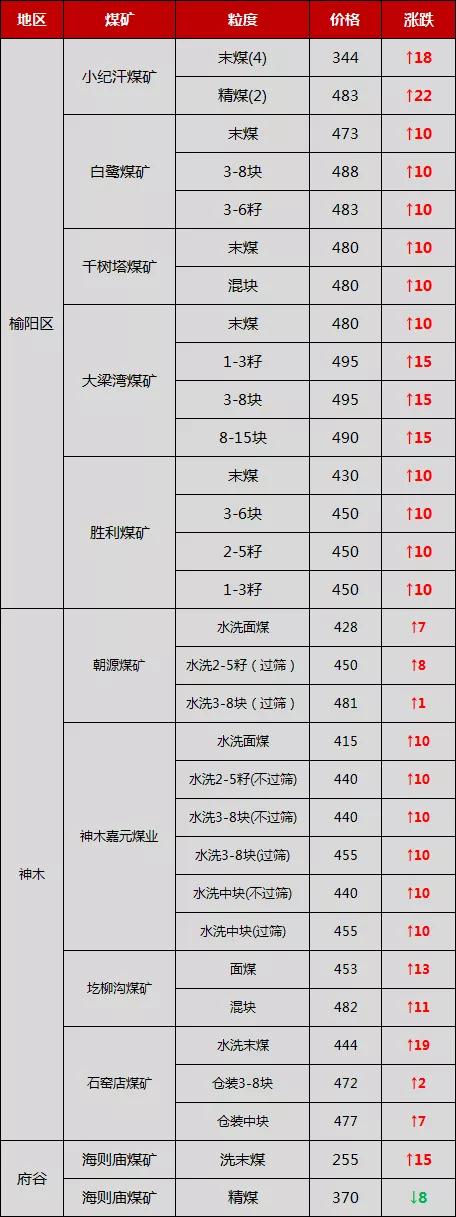近日,榆林煤礦地銷價(jià)持續(xù)上漲,主要因?yàn)榇笮偷V井都以保鐵路發(fā)運(yùn)為主,地銷量非常少,所以許多地銷客戶只能從小型礦井拉運(yùn),助推煤價(jià)上漲。 比如,目前榆陽(yáng)區(qū)小紀(jì)汗煤礦、杭來(lái)灣煤礦、榆樹灣煤礦、金雞灘煤礦地銷量非常少,所以榆陽(yáng)區(qū)其他小礦持續(xù)上調(diào)價(jià)格。 最新調(diào)價(jià)表: