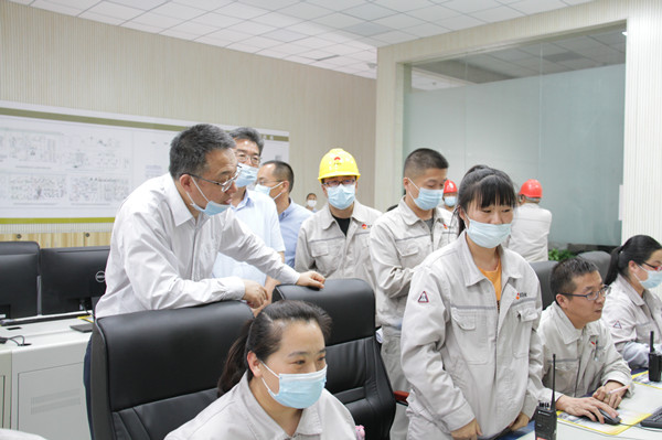 孫曉軍一行到青銅峽片區(qū)中控室了解生產(chǎn)情況,集團公司副總裁、片區(qū)總經(jīng)理張立軍對片區(qū)生產(chǎn)經(jīng)營情況進行了詳細匯報。孫曉軍對青銅峽片區(qū)生產(chǎn)系統(tǒng)保持穩(wěn)定運行給予肯定。