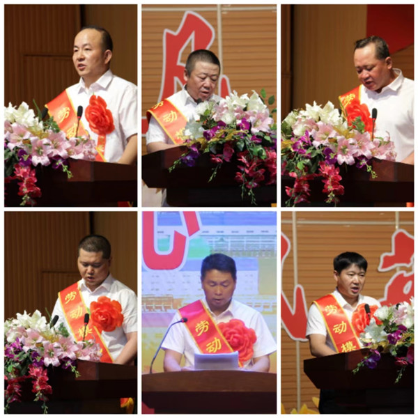 作報(bào)告的勞動(dòng)模范。自上而下、自左至右,依次為:陶新明、楊曉峰、鄧麗軍、王佳、張建忠、劉華