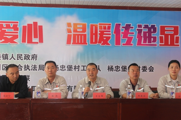 彭堡鎮(zhèn)黨委書(shū)記范亞寧、人大主席呂維兵,原州區(qū)綜合執(zhí)法局駐村工作組負(fù)責(zé)人王鑫,楊忠堡村書(shū)記童正武;金昱元化工集團(tuán)黨委副書(shū)記、工會(huì)主席尚興,集團(tuán)公司副總裁、固原基地黨委書(shū)記王立軍,固原基地工會(huì)主席劉志江、女工主任張靜出席儀式。