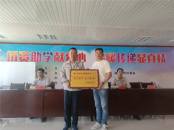 最后,彭堡鎮(zhèn)楊忠堡村黨支部書記童正武為寧夏金昱元化工集團股份有限公司頒授了“捐資助學 愛心企業(yè)”榮譽牌。