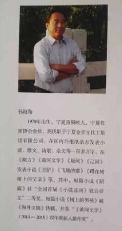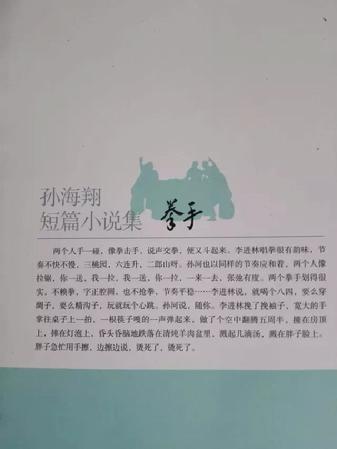 在文學(xué)日益式微的今天,仍有一些虔誠(chéng)的信徒堅(jiān)守在文化創(chuàng)作的金牧場(chǎng),F(xiàn)供職于寧夏金昱元化工集團(tuán)有限公司的孫海翔,二十年如一日始終在青銅峽市這片熱土上堅(jiān)持著他的文學(xué)夢(mèng)想。歷時(shí)半年,短篇小說(shuō)集《拳手》終于出版。這是青銅峽市作家孫海翔出版的第一部書,共收入28篇短篇小說(shuō)。